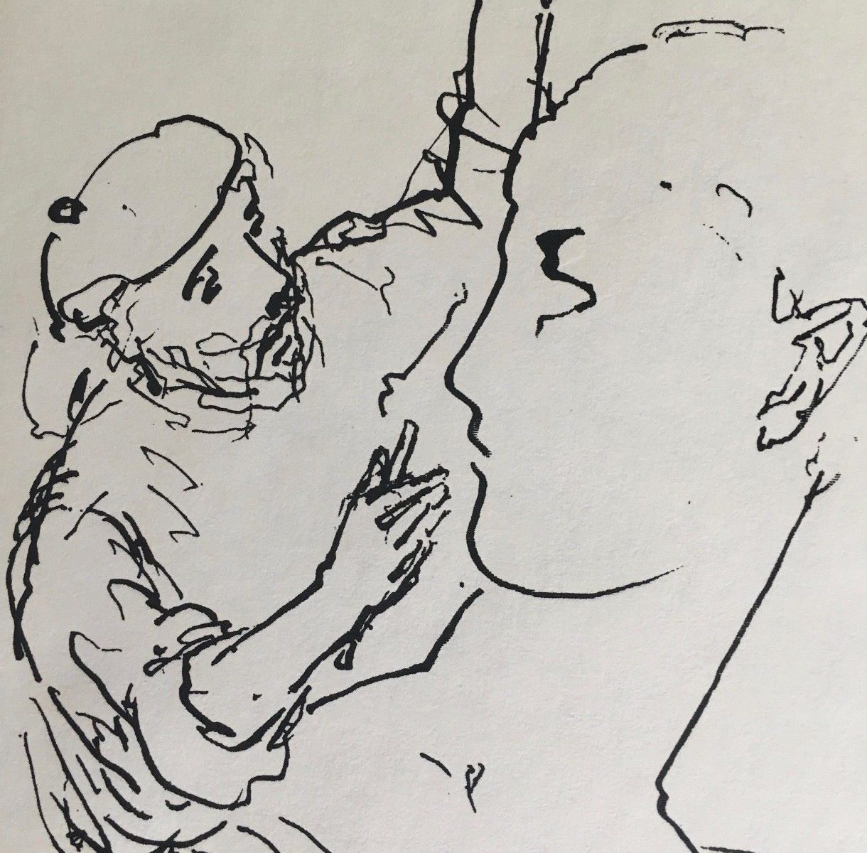 Signierter Original Siebdruck (rückseitig bezeichnet und noch einmal signiert), lose in er Klappkarte – diese mit einem persönlichen Text des Künstlers an Prof. Gertrud Thiele (Konrektoren der HFBK Dresden)