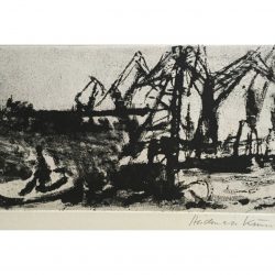 Heidemarie Kummer: Kräne im Hafen sign.- Radierung der Gisela Bührmann Schülerin